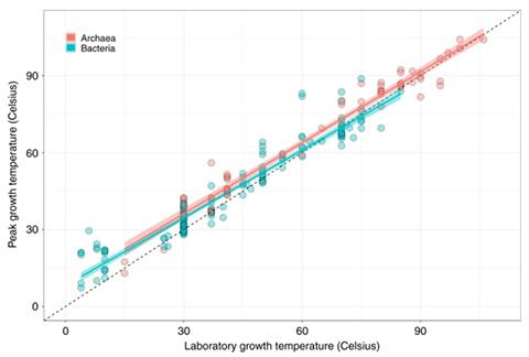 예상대로 대부분의 원핵생물은 고온에서 훨씬 많은 이산화탄소를 배출했다. 보통 45℃ 미만에서 사는 중온성 원핵생물은 온도 상승에 민감한 반응을 보였다. 반면에 45°C 이상에서 사는 고온성 원핵생물은 별다른 반응을 보이지 않았는데, 이미 고온에 적응한 상태라서 영향을 덜 받는다고 추정된다.